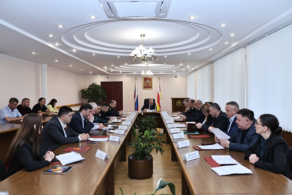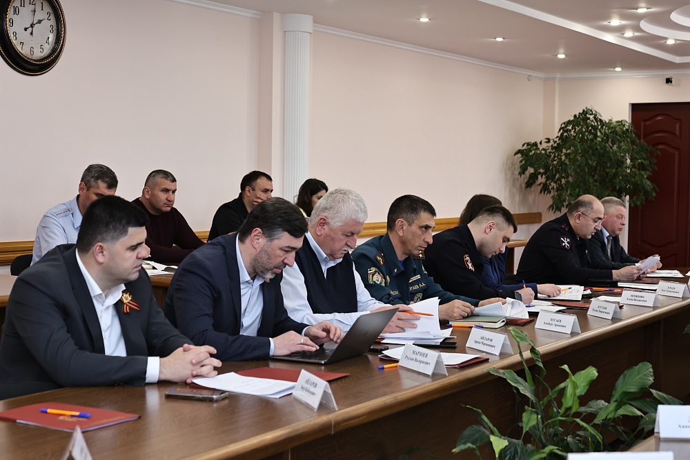 В ходе совещания обсуждались меры обеспечения безопасности в период проведения общественных мероприятий, посвященных Дню весны и труда, 80-ой годовщине Победы в Великой Отечественной войне и Дню России.