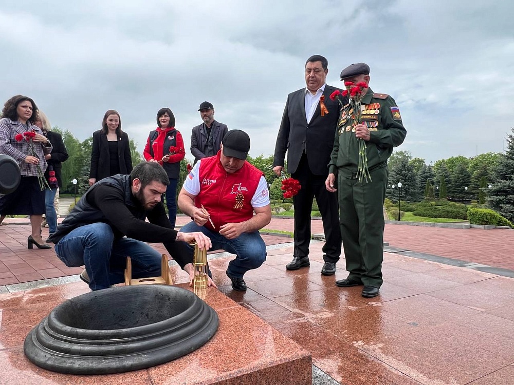 В республике частицу Вечного огня принесут также к стеле «Город воинской славы» и к мемориалу «Эльхотовские ворота».