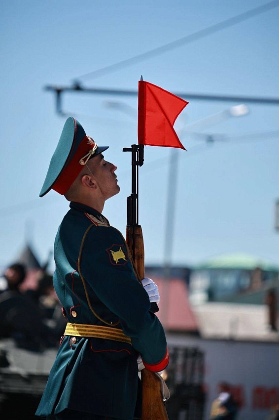 Участники парада и гости почтили память воинов, павших на полях сражений, минутой молчания.