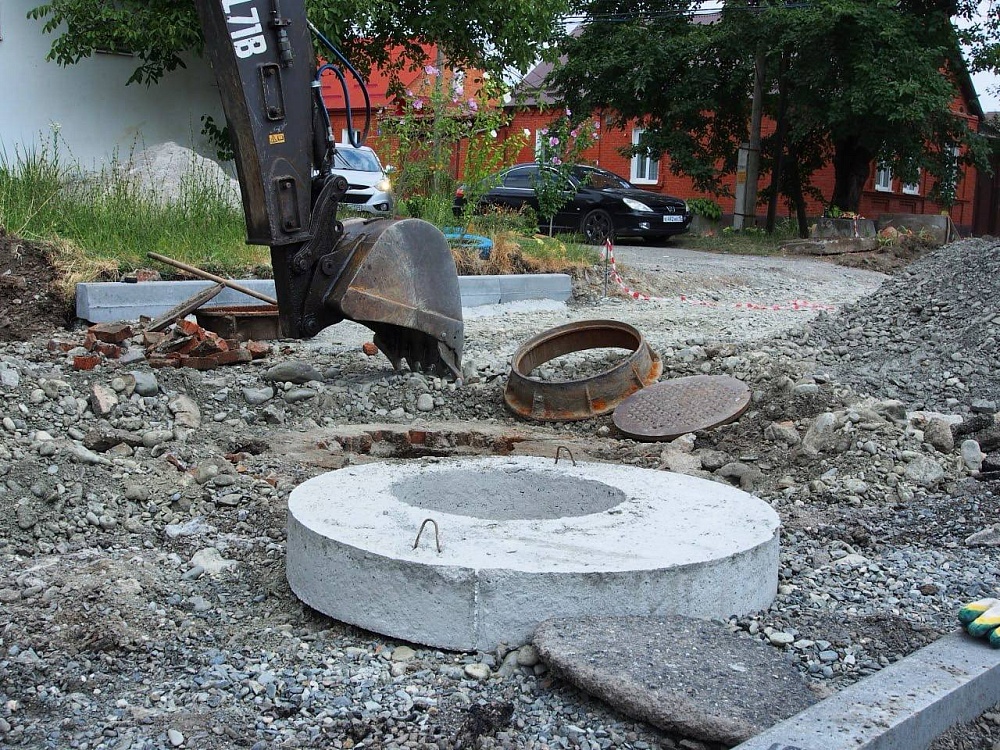 Здесь уже установили новые бордюры и поребрики. Специалисты подрядной организации сейчас занимаются обустройством тротуаров и выравниванием люков. Затем начнется укладка нового асфальтового покрытия на проезжей части.