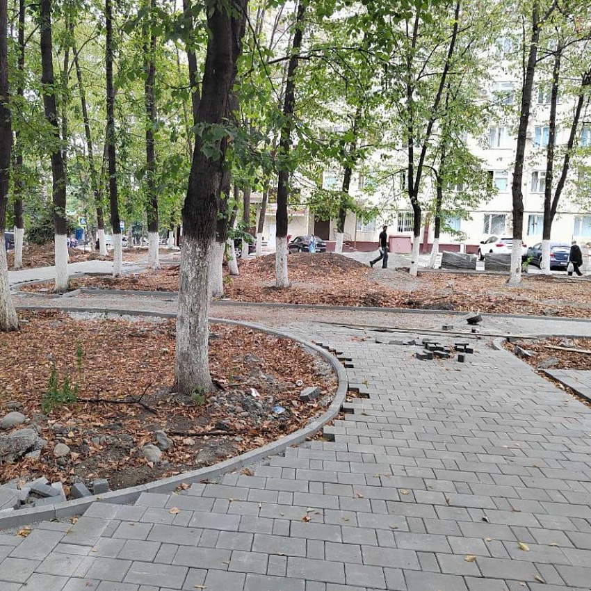 Продолжается благоустройство небольшого сквера по ул. Куйбышева рядом с поликлиникой № 1Ремонт проходит в рамках нацпроекта «Инфраструктура для жизни». Сейчас там проводятся земляные работы. Специалисты установили бордюры и завершают укладывать брусчатку. План благоустройства предусматривает установку новых опор освещения, монтаж скамеек и урн, а также озеленение территории.