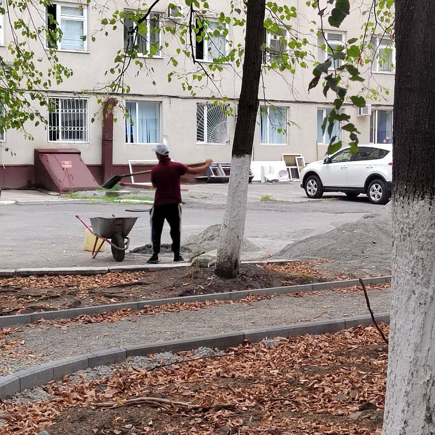 Продолжается благоустройство небольшого сквера по ул. Куйбышева рядом с поликлиникой № 1