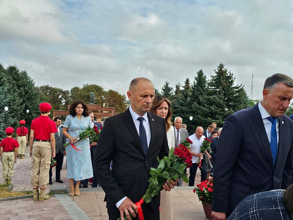 Во Владикавказе проходит XVII съезд Союза городов Воинской Славы РоссииДелегаты съезда почтили память героев Великой Отечественной войны. На Мемориале Славы состоялось возложение цветов к Вечному огню и памятнику дважды Героя Советского Союза Исса Плиеву. В мероприятии приняли участие мэр Владикавказа Вячеслав Мильдзихов и председатель Собрания Представителей города Сергей Таболов.