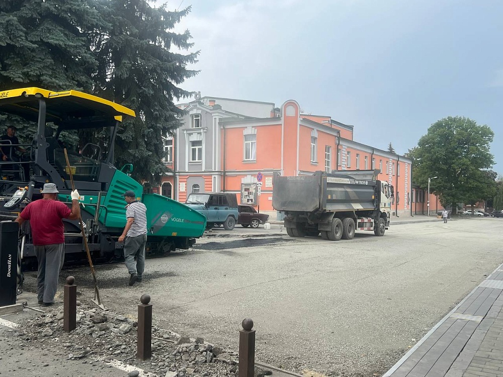 Специалисты подрядной организации уже выполнили выравнивание дорожного основания и уложили нижний слой асфальта. Далее проведут частичную замену бортового камня и уложат верхний финишный слой.