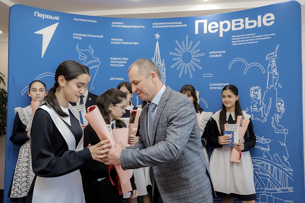 Юным жителям Владикавказа вручили паспортаЦеремония вручения, приуроченная к празднованию Дня народного единства, прошла сегодня в администрации Владикавказа. Свои главные в жизни документы получили 35 ребят - активистов Движения Первых.