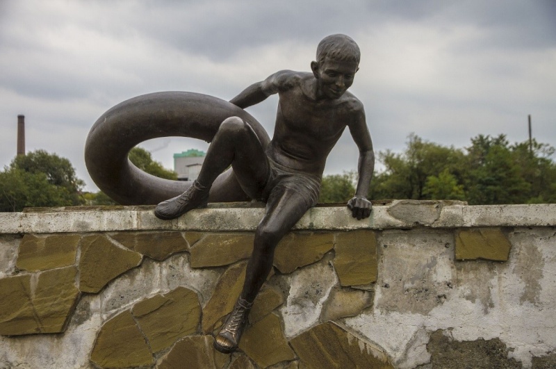 Этот мальчик будет всегда напоминать о советских 50-х и 60-х, когда купание в Тереке на автомобильной камере было любимым развлечением местных мальчишек. Автор(ы): Ибрагим ХаевСкульптурная композиция "Нарт Сослан"