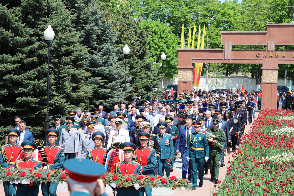 Сегодня в честь празднования 76-й годовщины Победы в Великой Отечественной Войне в городе Воинской Славы Владикавказе состоялось традиционное возложение цветов к монументам и памятникам боевой славы. В столице Северной Осетии памятные мероприятия прошли у памятника дважды Героя СССР Иссы Плиева, Мемориала и Аллеи Славы, «Рубежа обороны Владикавказа», Площади Победы, памятника Петру Барбашову.