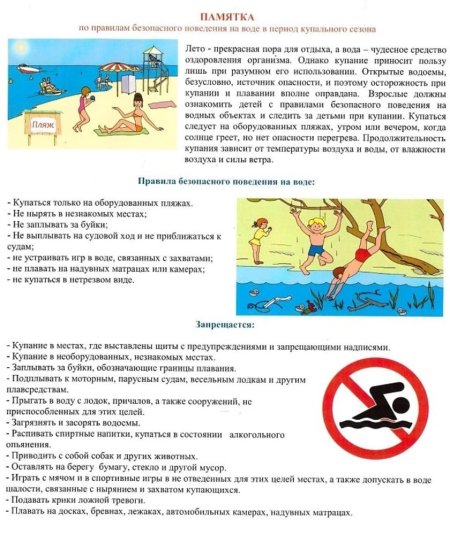 ПРАВИЛА ПОВЕДЕНИЯ НА ВОДЕ В СВЯЗИ С ПРИБЛИЖЕНИЕМ КУПАЛЬНОГО СЕЗОНА