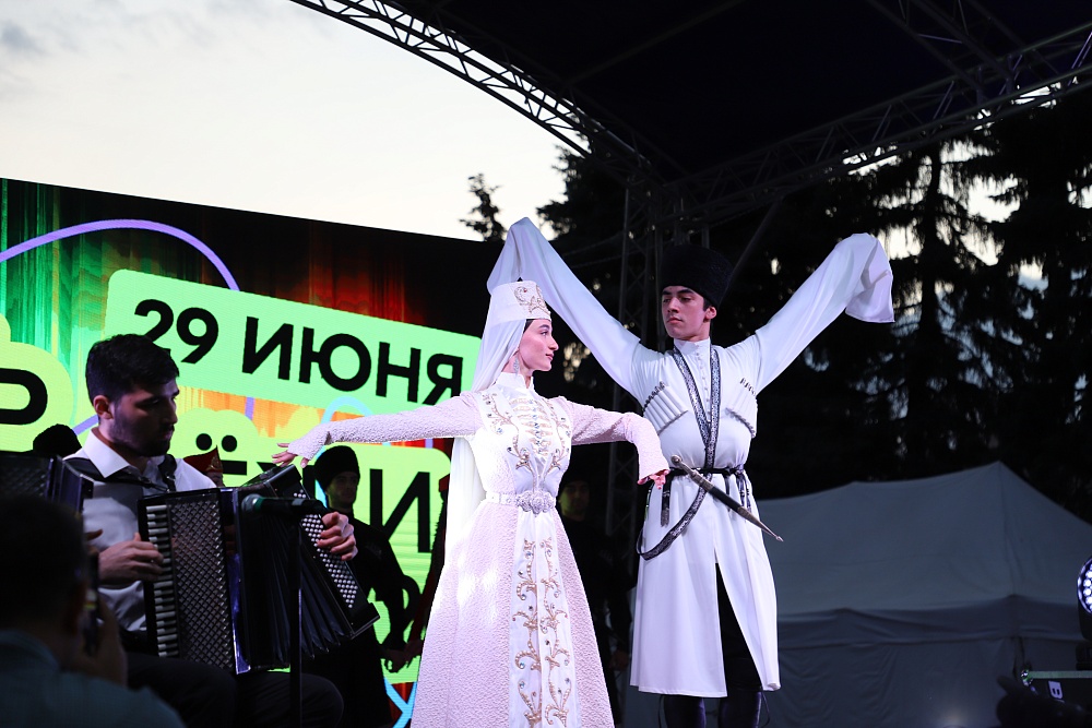Мероприятие началось с горского и массового танцев в исполнении молодых артистов ансамбля «Кавказ».