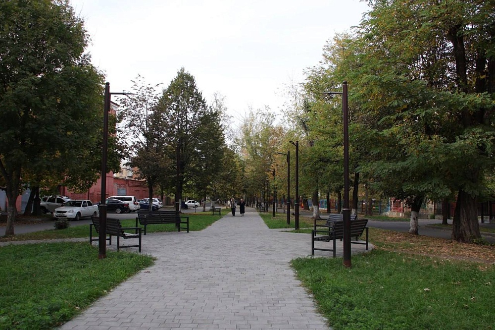 Для жителей района это единственная зона отдыха в шаговой доступности. Здесь полностью заменили дорожное покрытие, установили лавочки, урны, опоры освещения. Вечерами здесь собираются горожане с детьми.