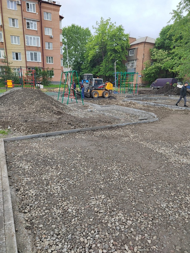 Специалисты уже провели демонтаж старого асфальтового покрытия. Сейчас проводятся земляные работы. Уже намечены дорожки, рабочие готовят основание для укладки брусчатки.