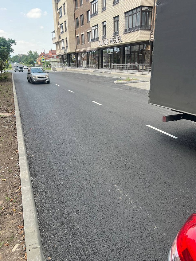 Завершили ремонт дороги по улице Кольбуса на участке от проспекта Коста до улицы Ардонской