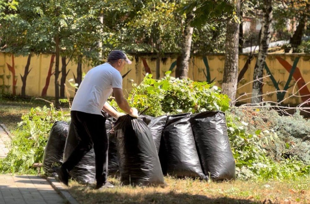 На санитарную уборку территории вышли 30 человек. Они собрали опавшую листву и мусор, побелили деревья. Мероприятие приурочили к празднованию Дня государственного флага Российской Федерации.