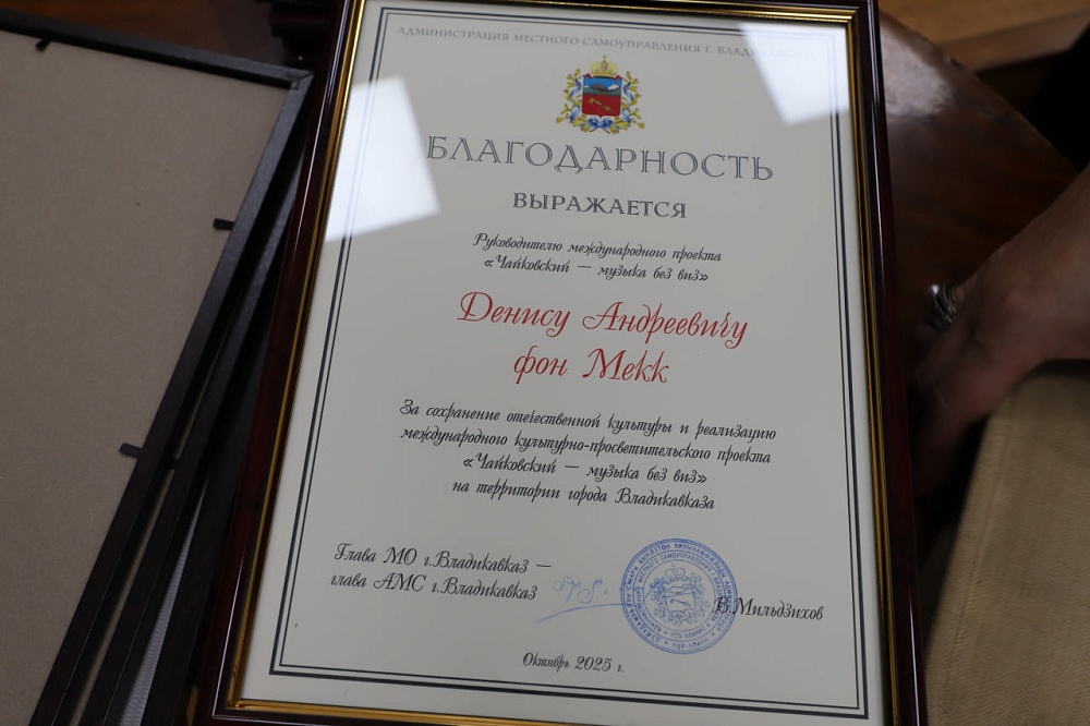 Денис фон Мекк в знак признания вклада детской музыкальной школы в дело сохранения наследия Чайковского преподнёс коллективу редкие книги с фотографиями композитора и нотную тетрадь с цитатами Петра Ильича.