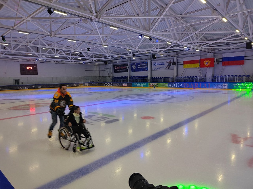 Один из участников акции Хетаг Бестаев — большой молодец. Он уже несколько лет успешно занимается парафехтованием. На лед вышел впервые. Сказал нашим сотрудникам, что ему очень понравилось.