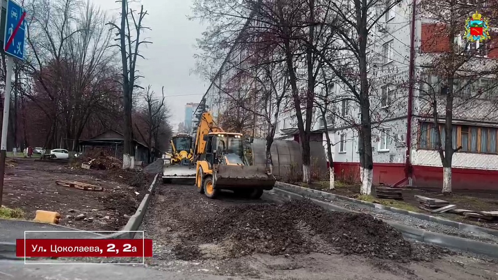 Сейчас в рамках программы завершаем ремонт двора по ул. Цоколаева, 2 и 2а. Капитальный ремонт здесь не проводился более 40 лет. Специалисты демонтировали старое асфальтобетонное покрытие, установили бордюры и поребрики. Рабочие уже заасфальтировали основную часть дороги и приступили к благоустройству тротуаров. Установим лавочки и смонтируем освещение. При благоприятных погодных условиях работы завершим в ближайшее время.