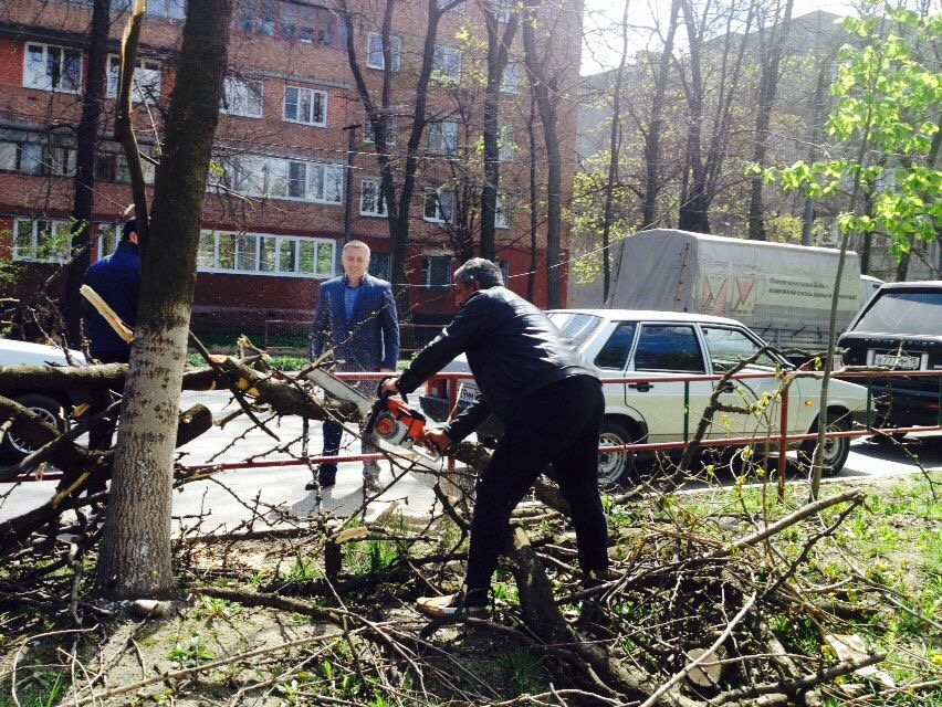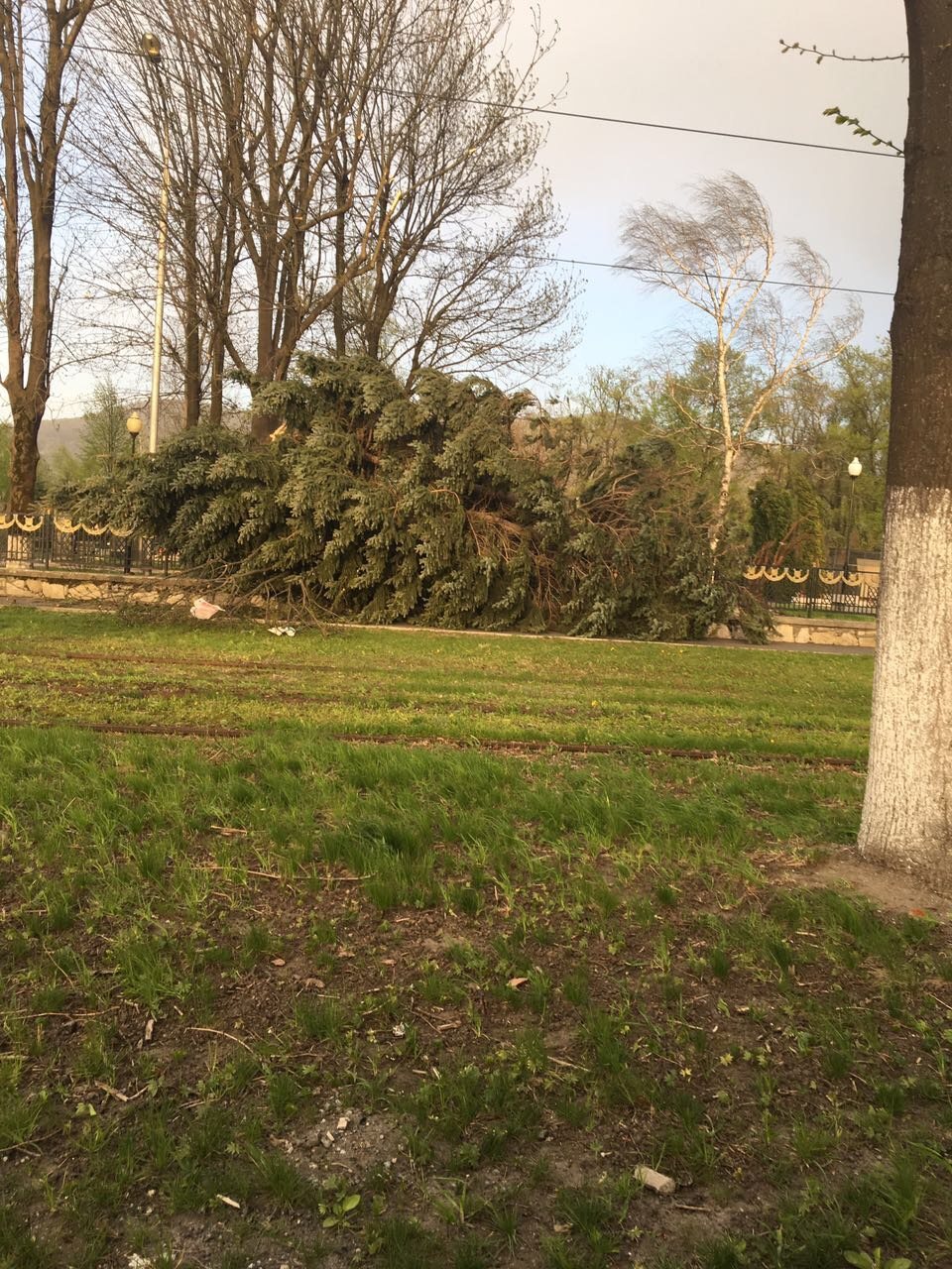 Шквалистый ветер, начавшийся во второй половине дня 23 апреля нанес значительный ущерб зеленым насаждениям, линиям электропередач и кровлям зданий по городу Владикавказ. Две скважины, питающие город водой, вечером прошлого дня остановили работу из-за перебоев с подачей электроэнергии. По данным МРСК накануне вечером по городу работали 9 аварийных бригад. ЕДДС к семи вечера уже приняла более 700 обращений от жителей города. Всего по городу Владикавказ было повалено более 100 деревьев, пострадали крыши зданий, было зафиксированы обрывы линий электропередач.
