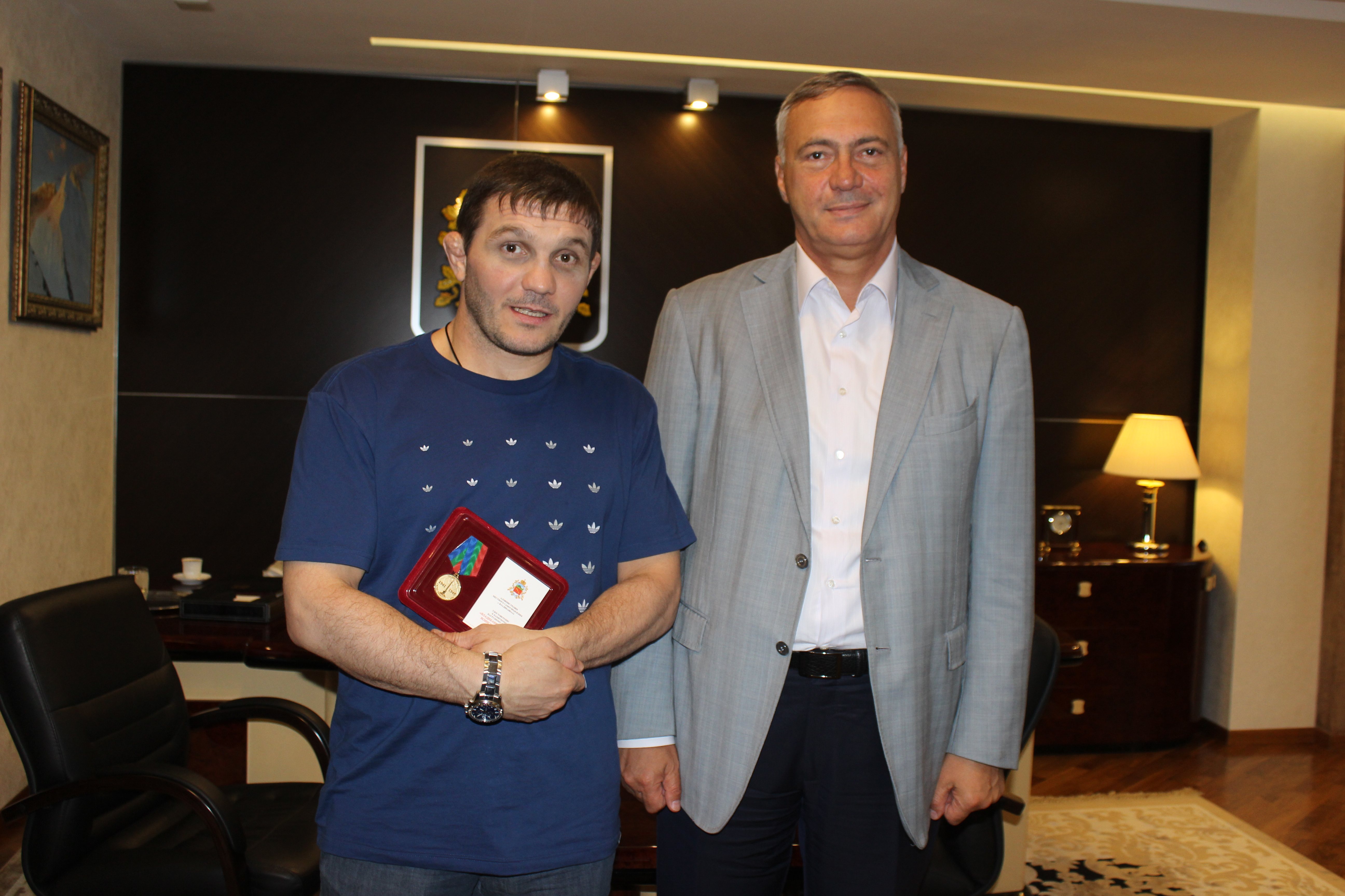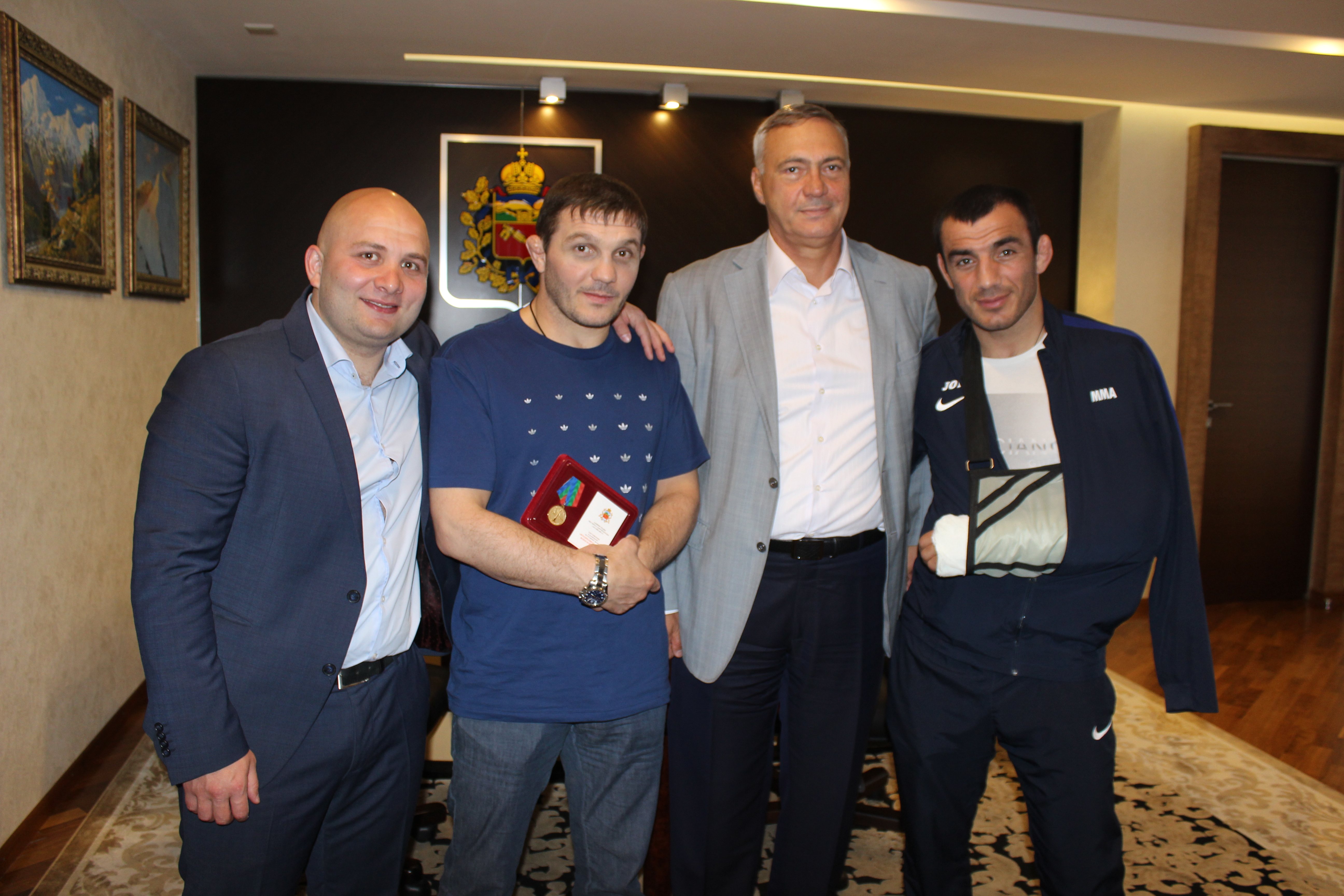 Глава АМС г. Владикавказ Борис Албегов встретился с чемпионом ACB в полулегком весе Маратом Балаевым. Градоначальник тепло поприветствовал именитого осетинского спортсмена и вручил ему высшую награду города – нагрудный знак «Владикавказ – город воинской славы».
