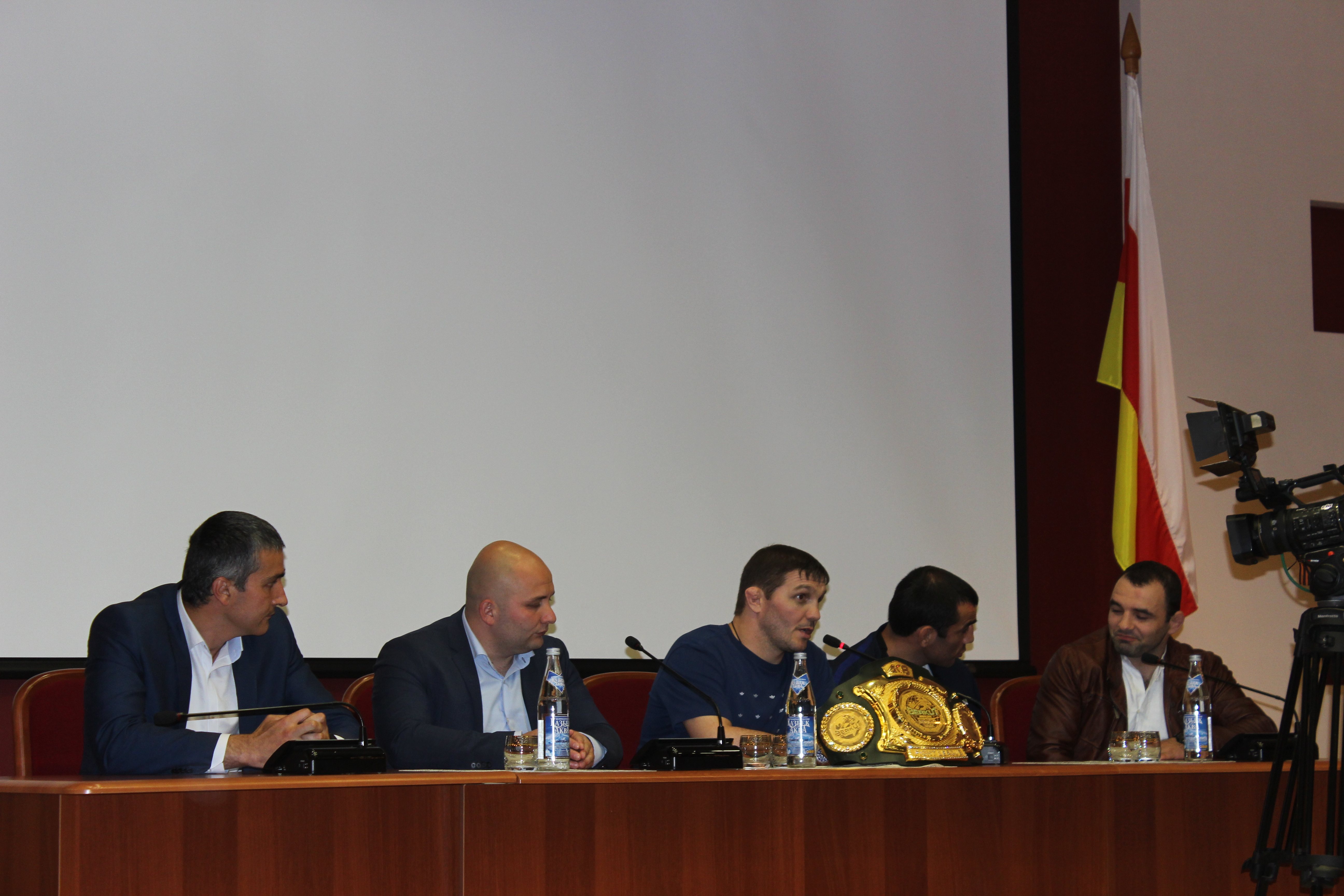 Чуть позже в зале заседаний АМС г. Владикавказ состоялась встреча Марат Балаева с представителями молодежи, которая была организована депутатами городского Собрания представителей. Пообщаться со знаменитым осетинским спортсменом и задать ему вопросы могли все желающие.