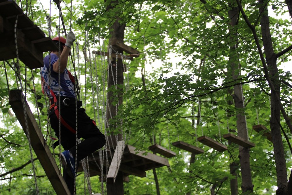 Популярностью пользовался полюбившийся всем веревочный городок – желающих преодолеть полосу препятствий не убавлялось до самого вечера.