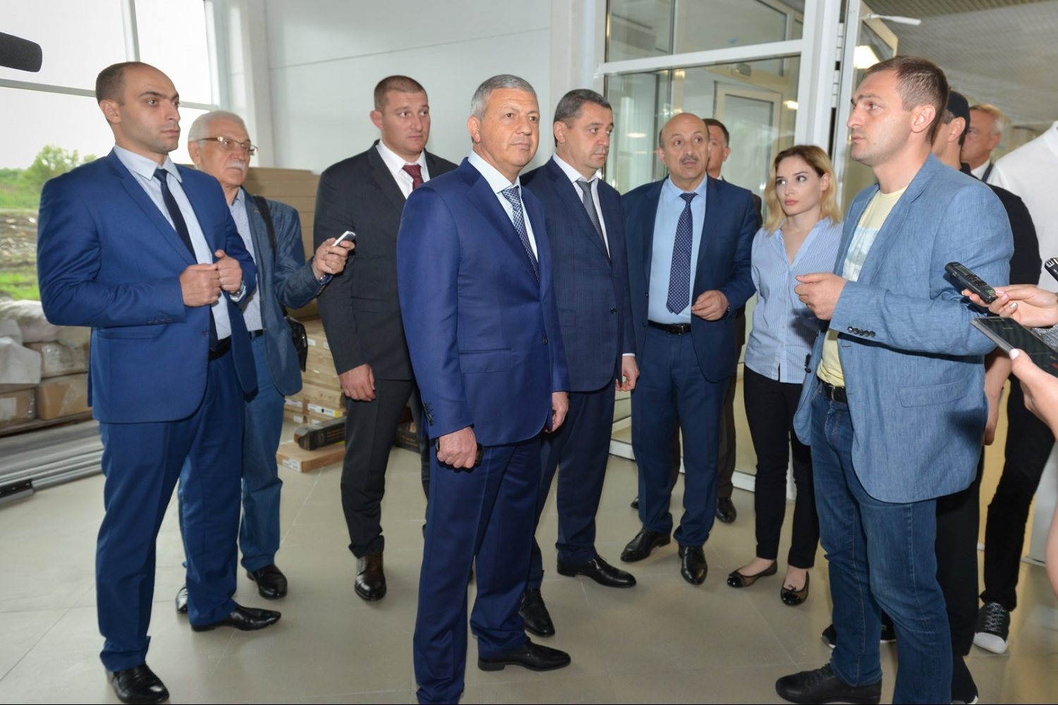 Один из них - республиканский Дворец тхэквондо, строящийся по ул. Морских пехотинцев во Владикавказе. Руководитель республики прибыл сюда в сопровождении вице-премьера Ахсарбека Фадзаева, министра строительства и архитектуры Русланбека Икаева и министра спорта Хасана Бароева. В настоящее время на объекте завершаются отделочные работы, открытие нового современного спортивного комплекса намечено на конец августа.