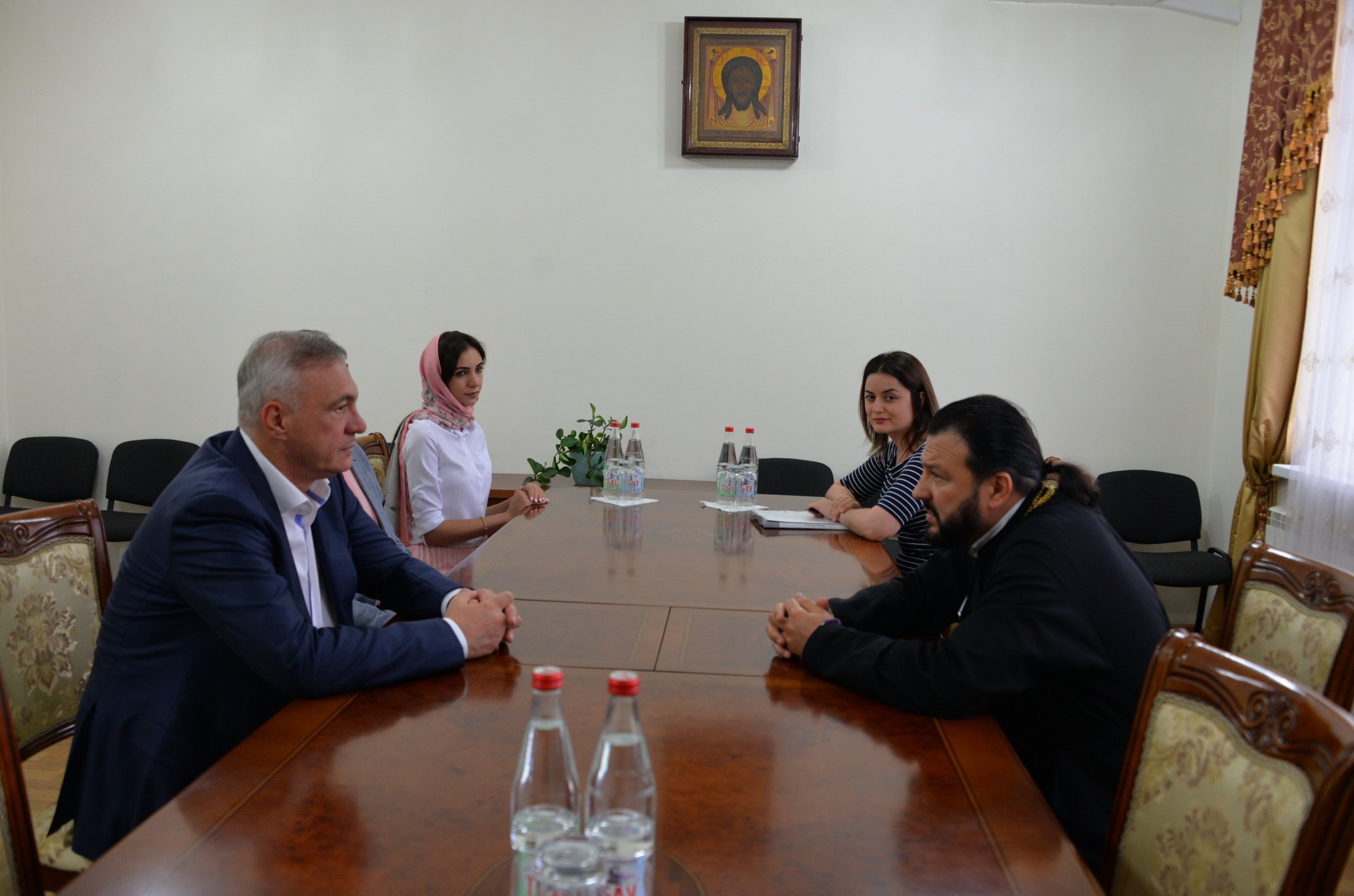 В управлении Владикавказской епархии состоялась встреча епископа Владикавказского и Аланского Леонида с Главой администрации г. Владикавказа Б.Х. Албеговым. На встрече присутствовал начальник Управления образования АМС г. Владикавказа Р.Ч. Гозюмов.