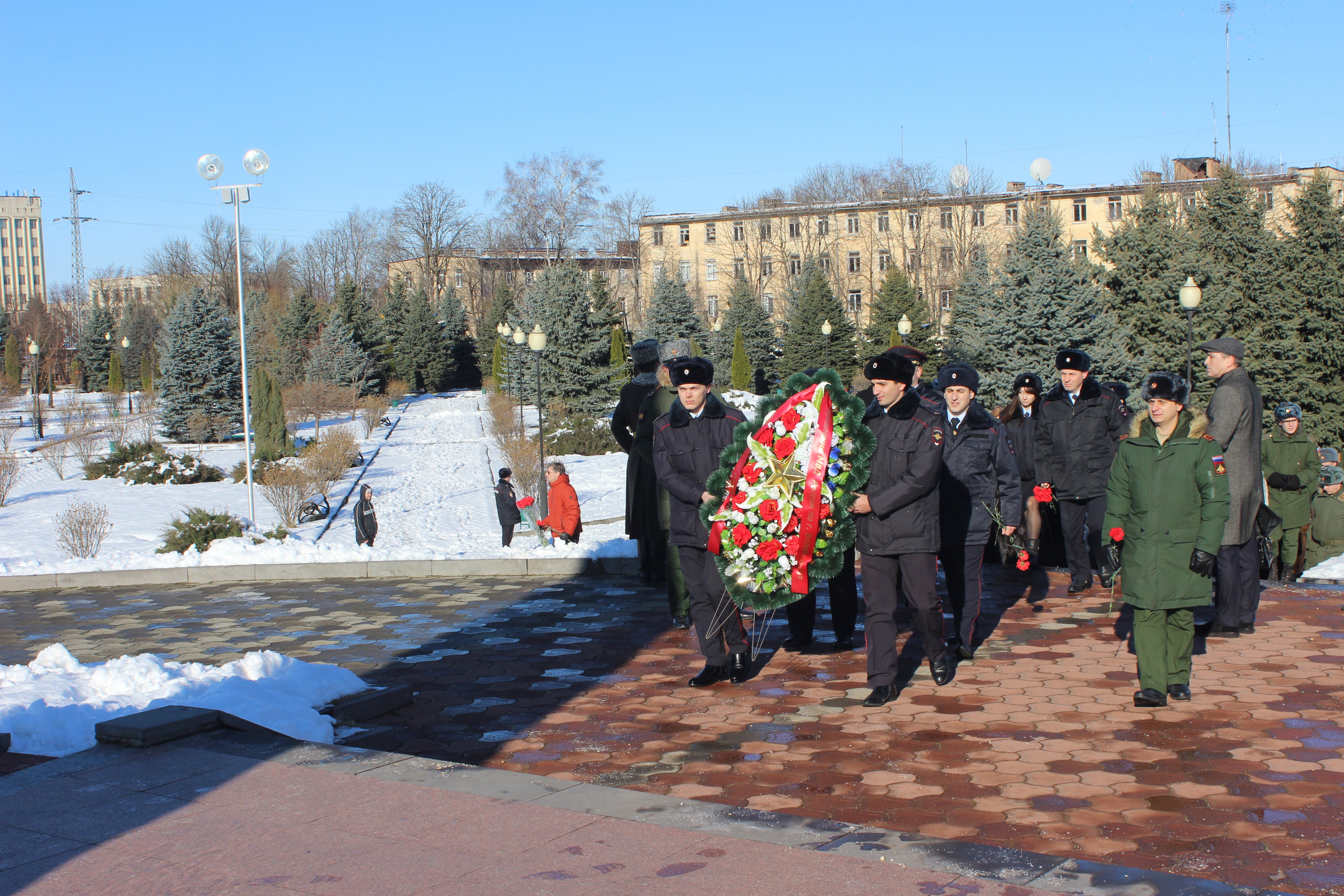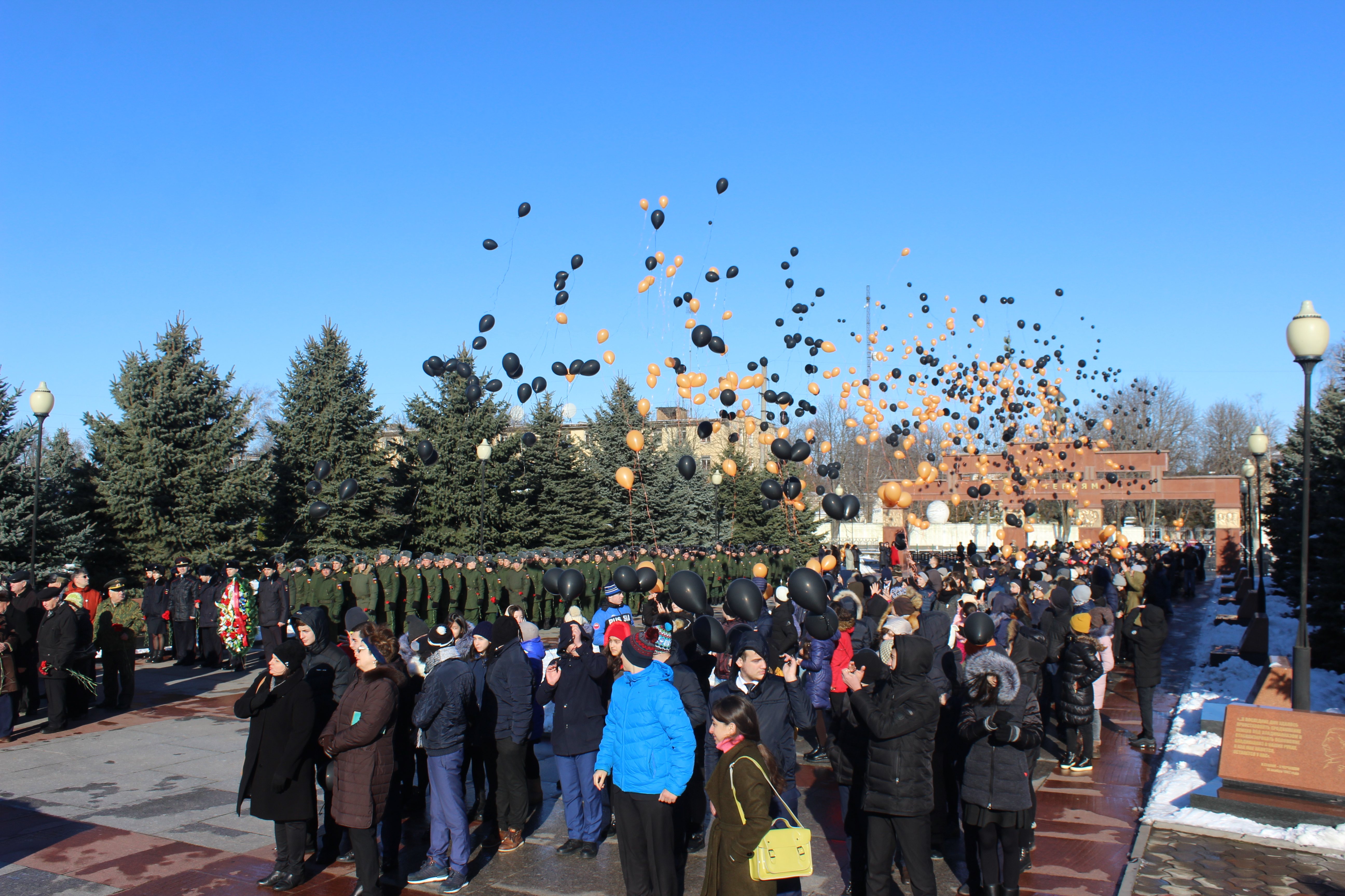 Память Героев, отдавших свою жизнь за мир и спокойствие своей Родины, почтили минутой молчания. Воспитанники детской музыкальной школы №1 им. Чайковского прочитали стихотворения на осетинском и русском языках. Гвардейский хоровой полк детской хоровой школы исполнил песню о защитниках Владикавказа. Школьники выпустили в небо множество шаров цвета Георгиевского флага. Мероприятие завершилось возложением цветов к монументу.