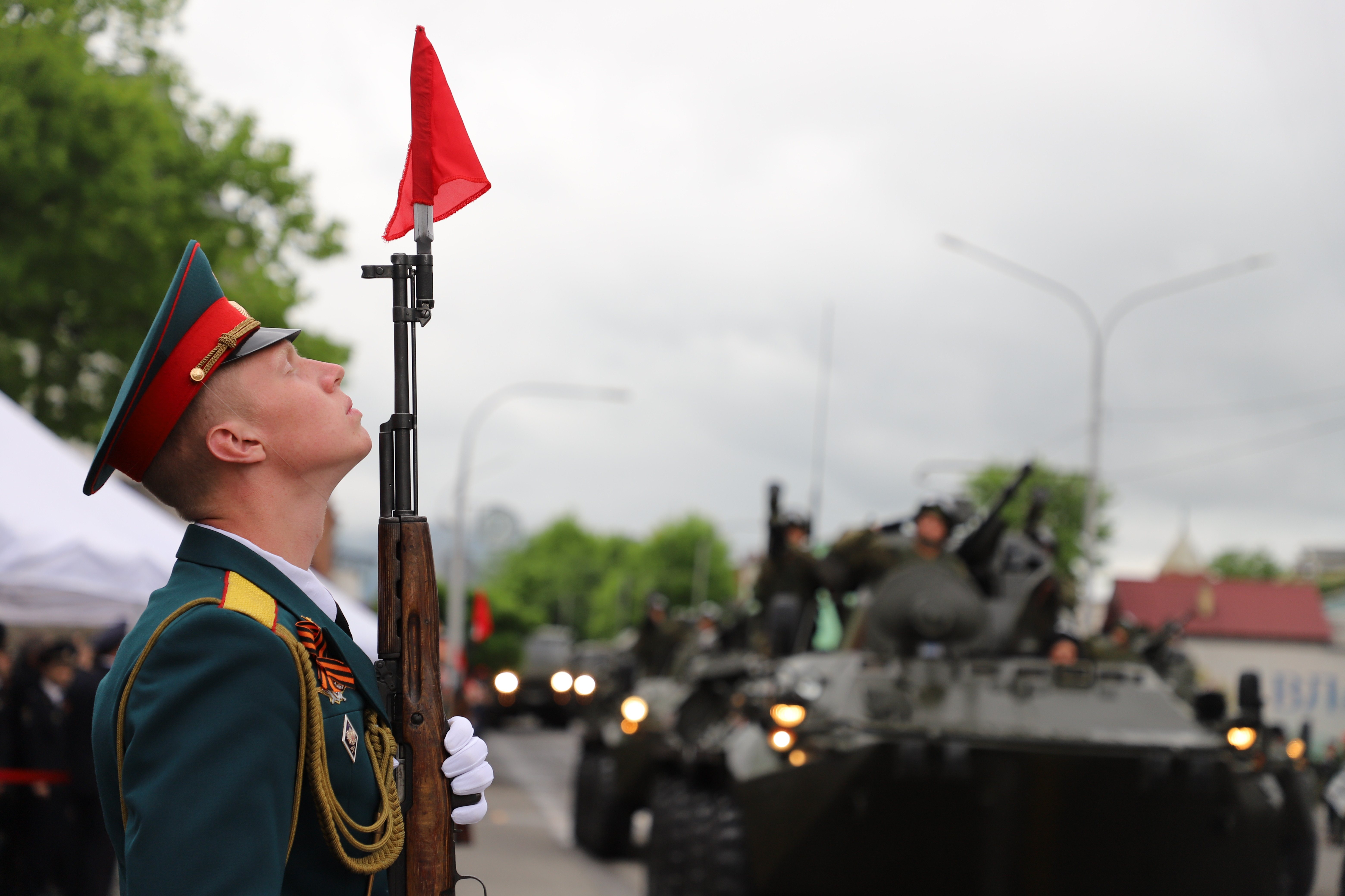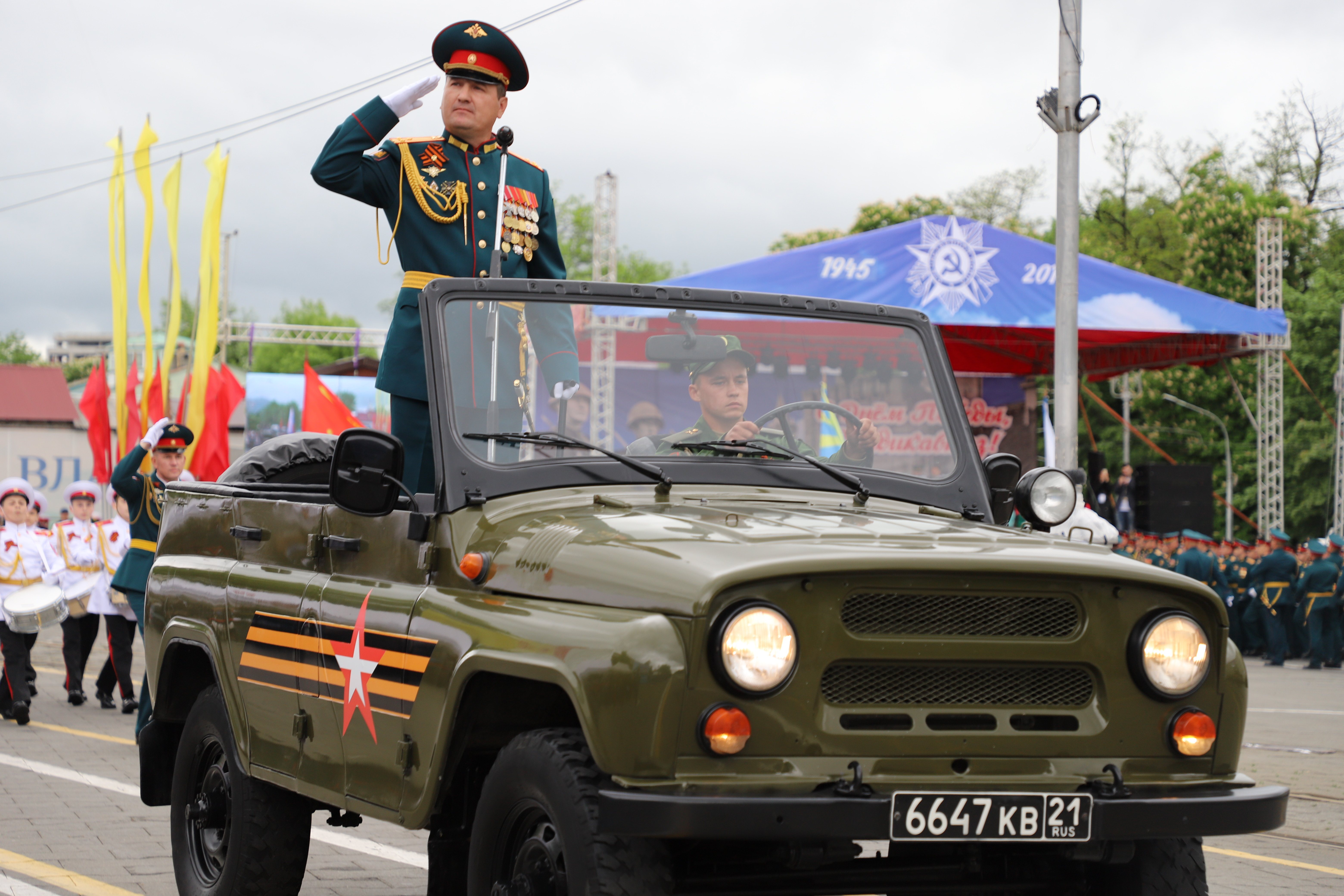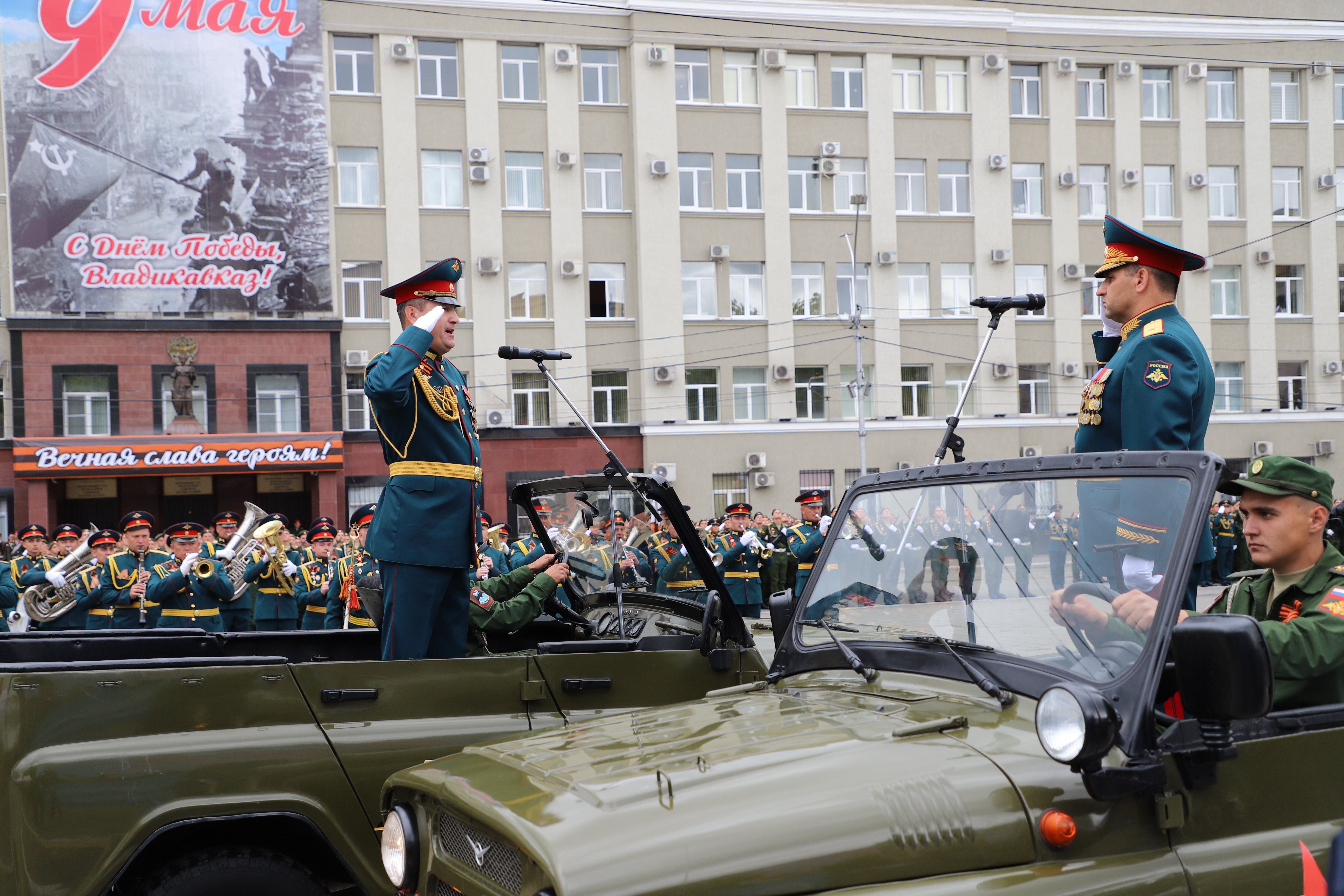 В 10 часов на площади Свободы прошел традиционный военный парад 58-ой Российской Армии. Принимал торжественный парад начальник штаба, генерал-майор Михаил Зусько. После объезда личного состава соединений первыми в праздничном марше прошли ветераны Отечественной войны, локальных войн, правоохранительных органов и труда. Колонну возглавил председатель Совета ветеранов Северной Осетии, генерал-майор авиации Солтан Каболов. Вместе с ним в первом ряду колонны прошли фронтовики Исрафил Макеев и Хизир Гулуев.