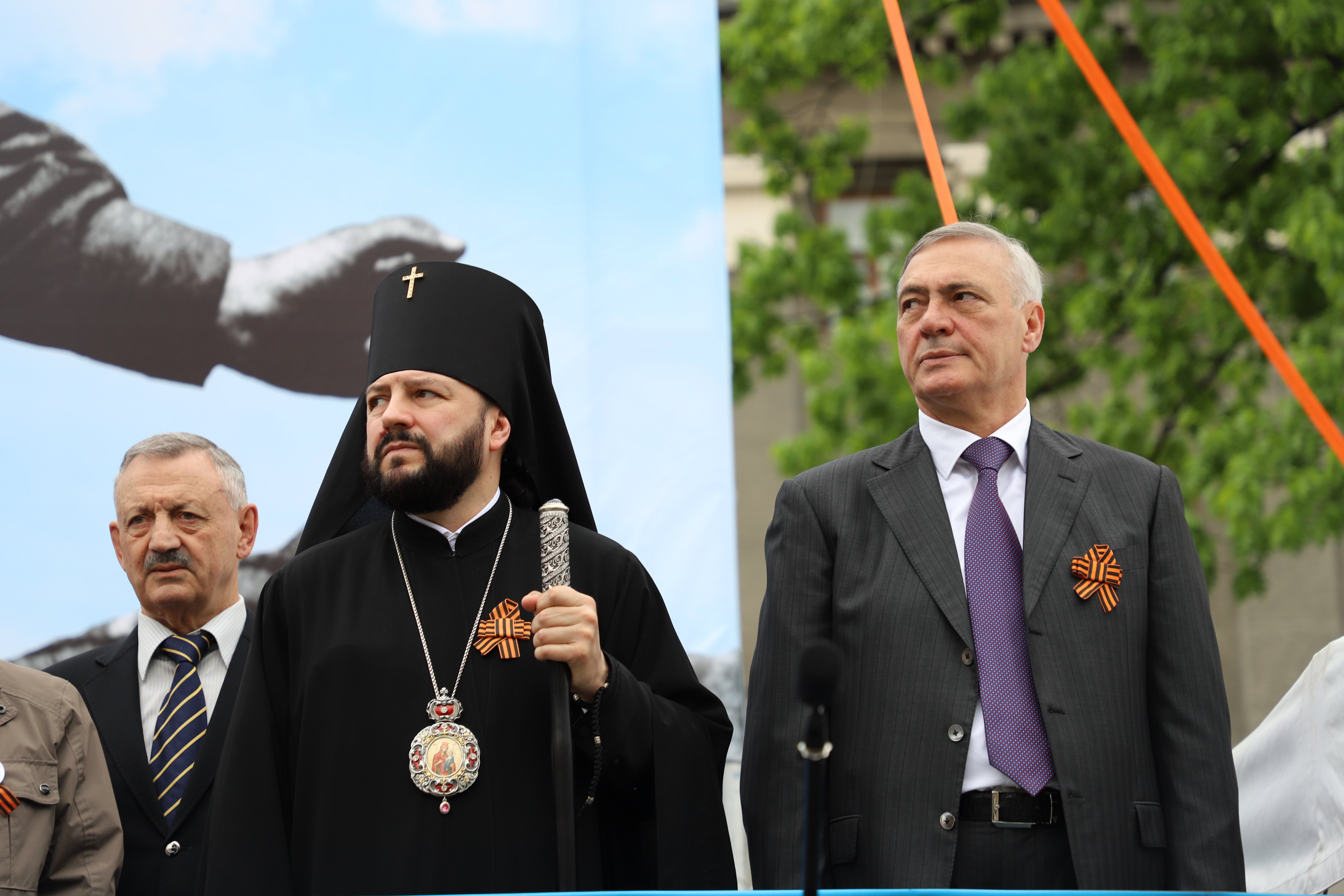 «Наш многонациональный народ героически сражался, отстоял свою свободу. В этом беспримерном акте героизма принимал участие и народ Осетии, проявляя чудеса мужества. На фронтах Великой Отечественной войны сражался каждый пятый житель республики, более половины из них не вернулись с фронта. Мы горды тем, что в славной военной летописи есть имена наших героев. Мы гордимся ими, солдатами великой Победы. Мы склоняем головы перед светлой памятью тех, кто не вернулся с полей сражений», - отметил в своей речи Глава республики.