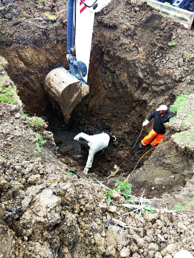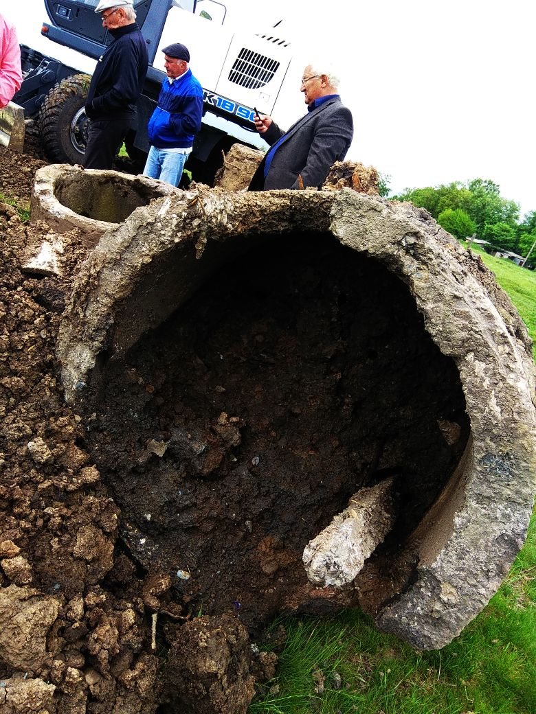 К сегодняшнему дню удалось заменить большую часть труб коллектора, прочистить 4 колодца. Предстоит освоить еще около 15 метров и построить дополнительный колодец. Работы затрудняются тем, что приходиться осуществлять замену разрушенных участков трубопровода, который расположен на глубине более четырех метров.