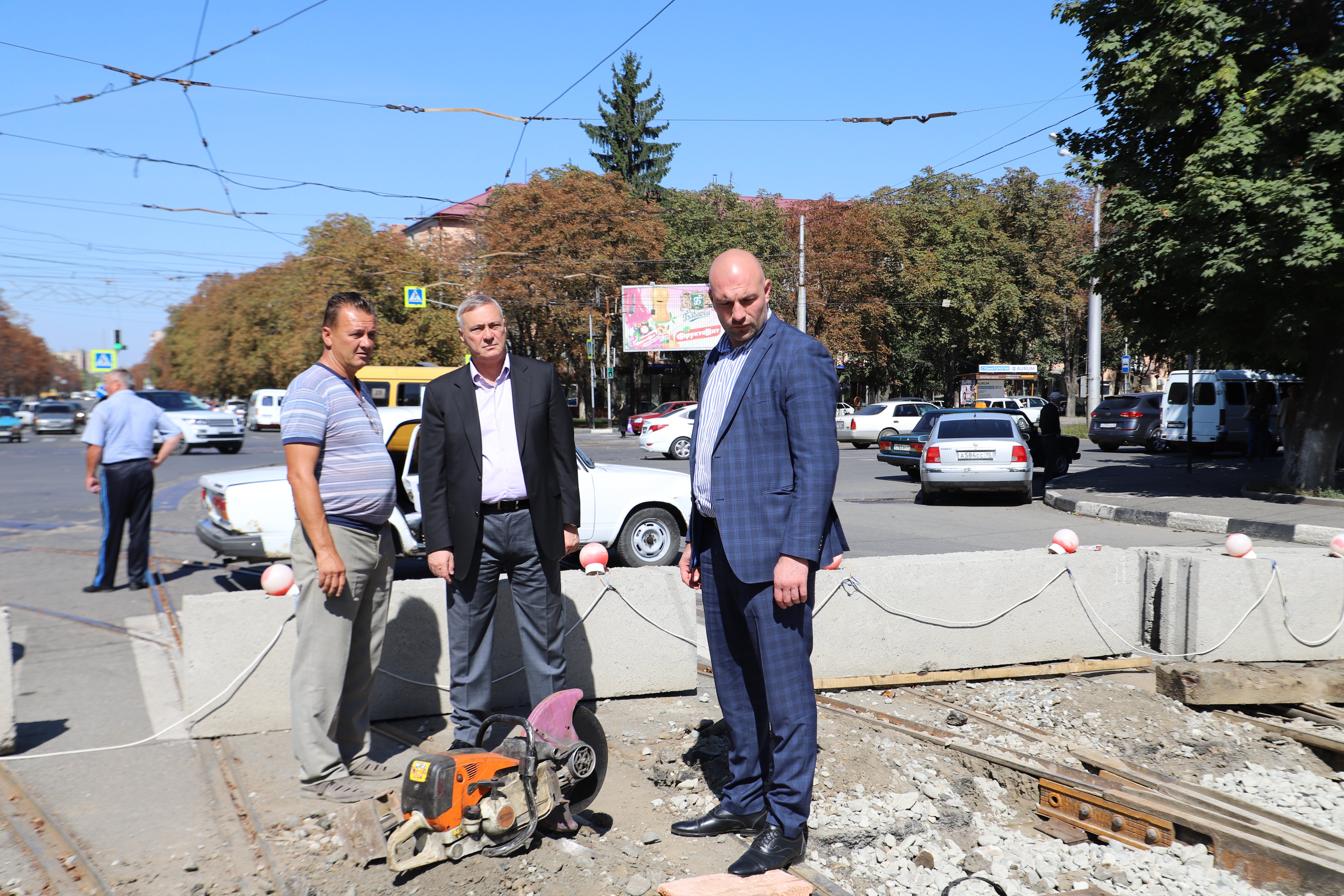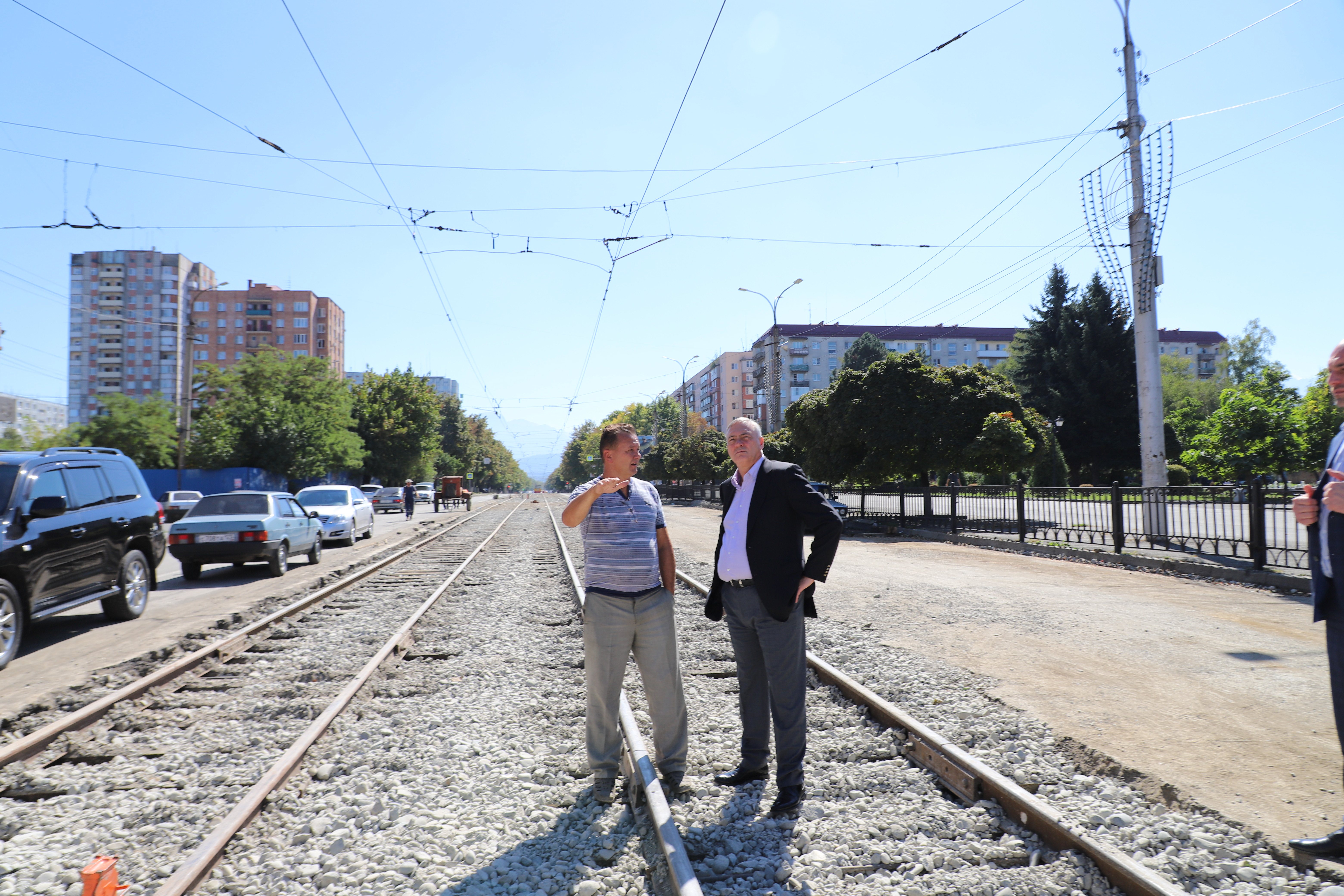 На проспекте Коста продолжается замена трамвайных путей на участке дороги от ул. Калинина до Х. Мамсурова. Глава Администрации местного самоуправления г. ВладкавказаБорис Албегов в сопровождении руководителя Левобережной префектуры АхсараТаутиева посетил самую длинную улицу города и на месте оценил качество выполняемых работ.