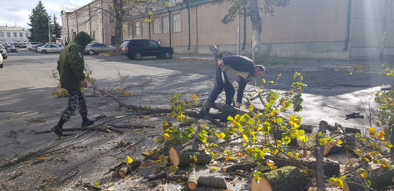В столице Северной Осетии ведутся работы по устранению последствий шквалистого ветра. Сотрудники специализированных служб по заявкам жителей оперативно выезжают на места, распиливают и вывозят поваленные деревья. В частности, работы ведутся на ул.Шмулевича, Августовских событий, Чкалова, Балаева, Карцинском шоссе, в сквере им. Аксо Колиева и по ряду других адресов.