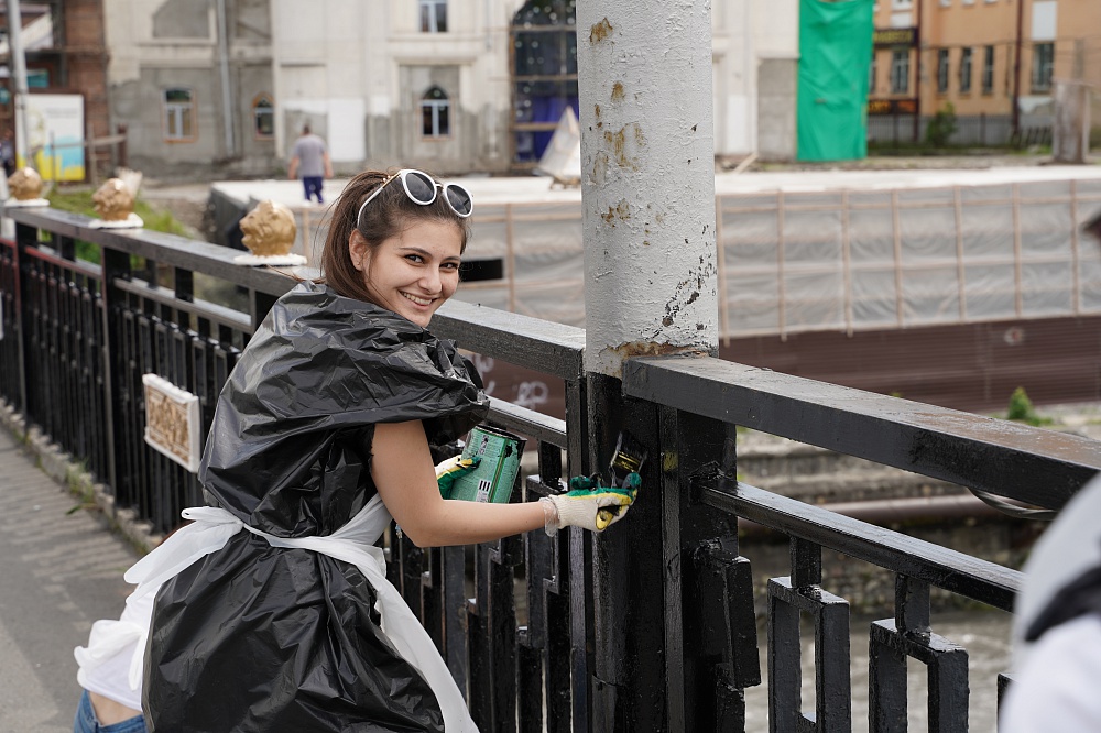 Участие в субботнике приняли порядка 4 тысяч человек—обновили краску на городских мостах и ограждениях, побелили деревья.