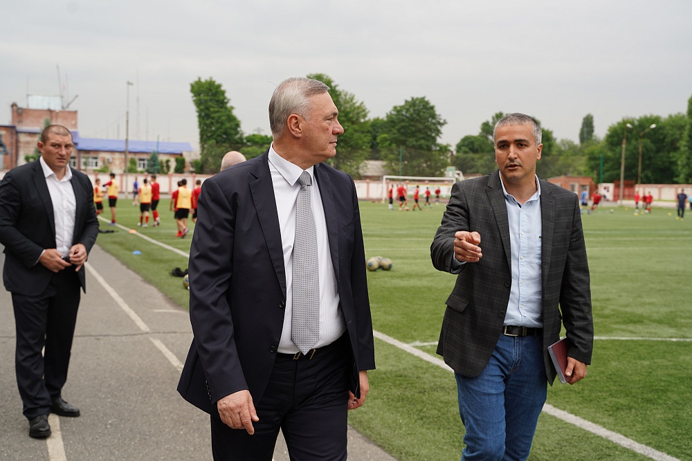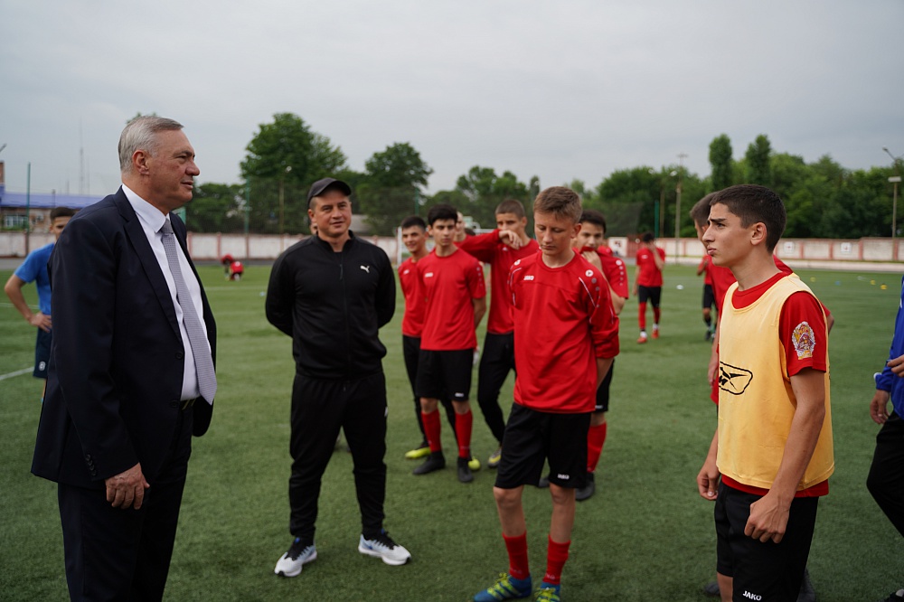Глава АМС г.Владикавказа Борис Албегов посетил стадион «Металлург», носящий имя ветерана Великой Отечественной войны, полного кавалера орденов Славы Виктора Коняева. Здесь он проверил ход обустройства раздевалок для молодых футболистов и пообщался с ребятами лично.