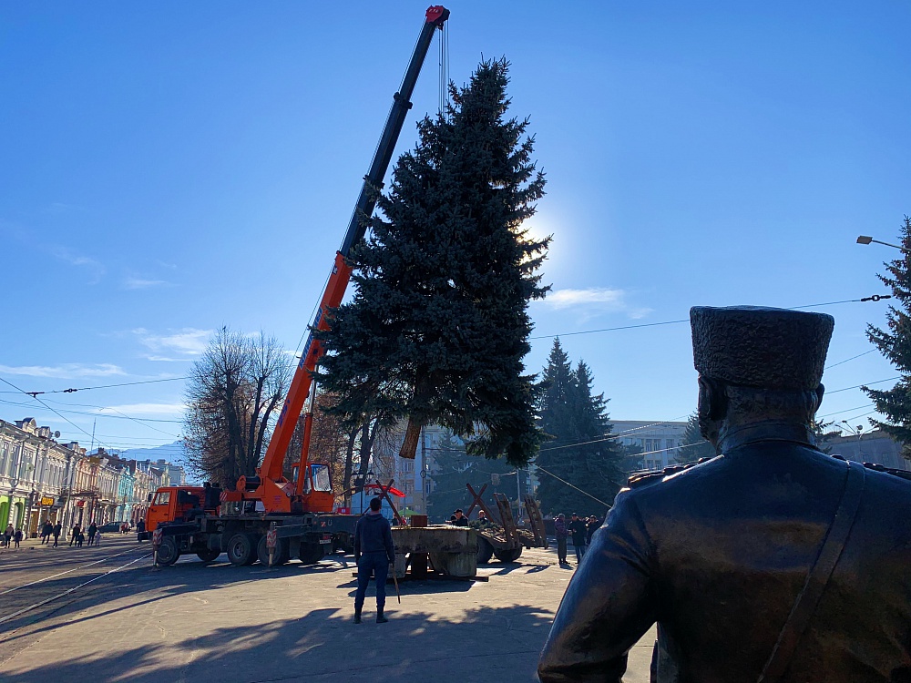 Главная новогодняя елка прибыла во Владикавказ и украсила центральное место проведения праздничных мероприятий – площадь Ленина.