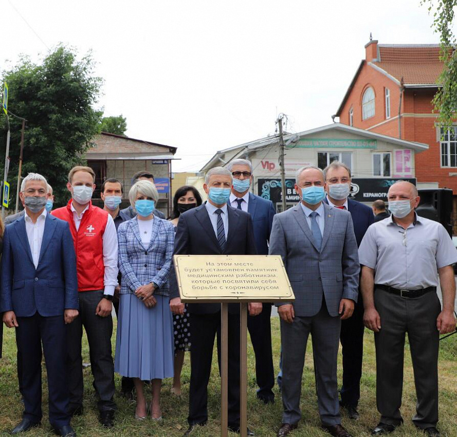 Сегодня на перекрестке улиц Барбашова и Леваневского Глава Республики Северная Осетия –Алания Вячеслав Битаров совместно с Председателем Правительства РСО-А Таймуразом Тускаевым, министром здравоохранения РСО-А Тамерланом Гогичаевым и главой АМС г.Владикавказа Тамерланом Фарниевым приняли участие в торжественном открытии таблички на месте будущего памятника медицинским работникам, которые посвятили себя борьбе с короновирусом.Сложившаяся мировая ситуация и пандемия показали нам, что действительно важно— здоровье и жизнь человека, которые бережно несут в своих руках доктора и медицинские работники республики и страны.