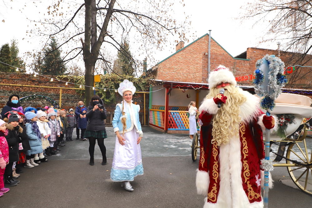 В связи с эпидемиологическими ограничения детские новогодние утренники меняют формат. Во время утренней прогулки к ребятам МБДОУ №38 г.Владикавказ в конной упряжке приехали Дед Мороз и Снегурочка, чтобы поздравить с наступающим Новым годом, вручить подарки и зажечь огни на большой елке. В праздничном мероприятии приняла участие и начальник управления образования АМС г.Владикавказ Альбина Дзлиева.