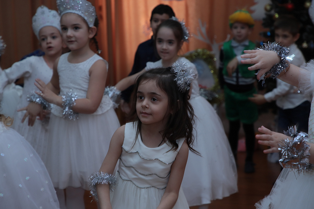 В Детском саду № 24 прошел новогодний утренник. Поздравить детишек пришел руководитель Промышленного района города Владикавказ Артур Хестанов.