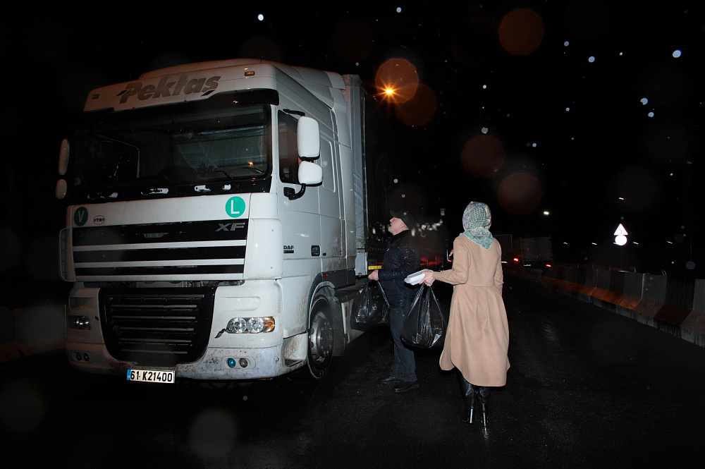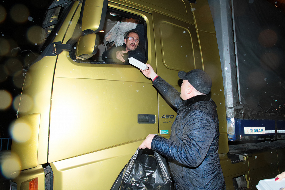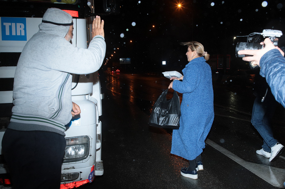 Водителей большегрузов у КПП "Верхний Ларс" обеспечили горячим питанием