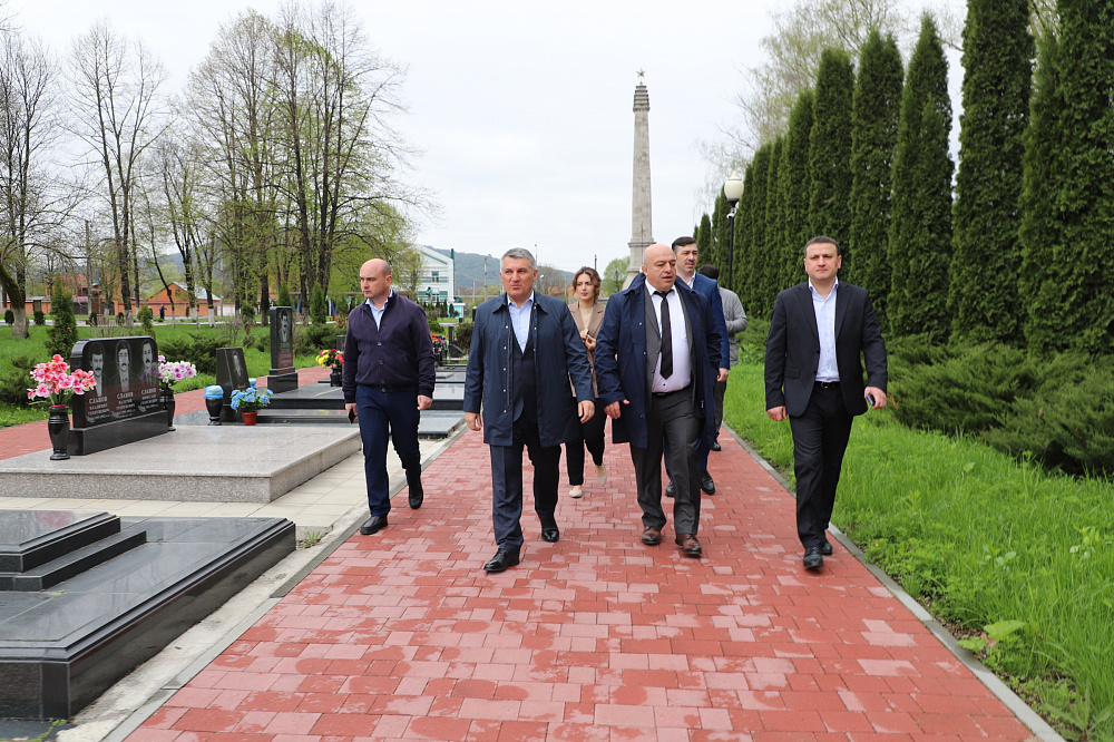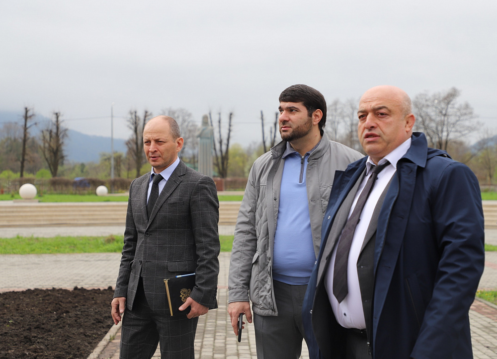 Первым пунктом объезда стал Мемориал и Алллея Славы. В прошлом году эта территория была расширена – память о уроженцах Осетии, ушедших на фронт Великой Отечественной войны, возвели монументальный ансамбль. По проекту архитектора Руслана Козырева был воздвигнут памятник «Скорбящая мать» и два барельефа. Здесь же высадили «Сад Победы» − 79 именных деревьев по числу уроженцев Северной Осетии−Героев Советского Союза.