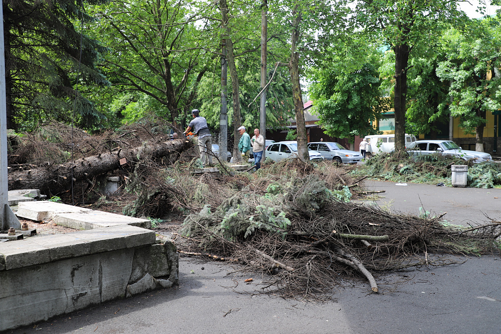 С раннего утра на улицах Владикавказа идут работы по устранению последствий непогоды. Сильным ветром были повалены деревья и повреждены воздушные линии электропередач. После утреннего объезда города были определены аварийные участки, по которым безотлагательно начались восстановительные работы. Заявки от горожан продолжают поступать. Бригады «ВладЗеленстроя» убирают поваленные деревья с дорог и тротуаров.