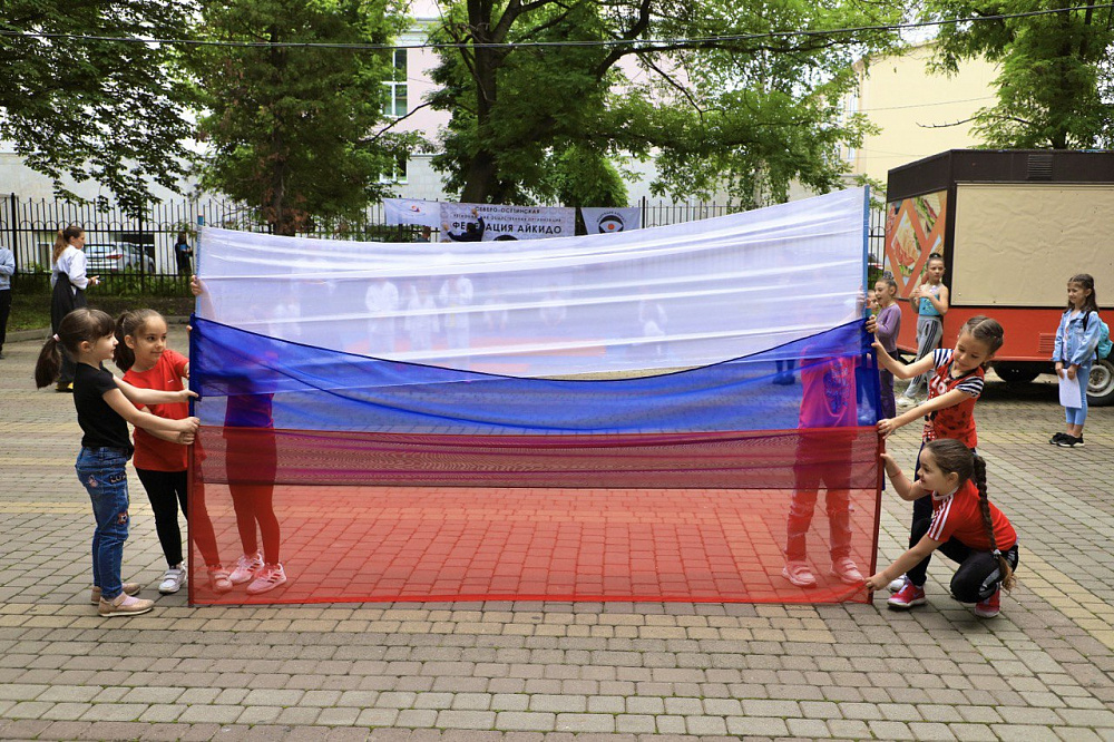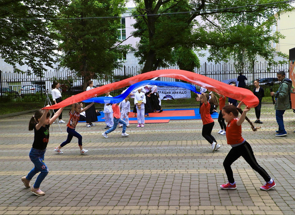 В преддверии Дня России детский сад №38 и Федерация айкидо Северной Осетии провела спортивный праздник. Воспитанники садика и родители посоревновались в эстафетах и попробовали себя в искусстве айкидо.
