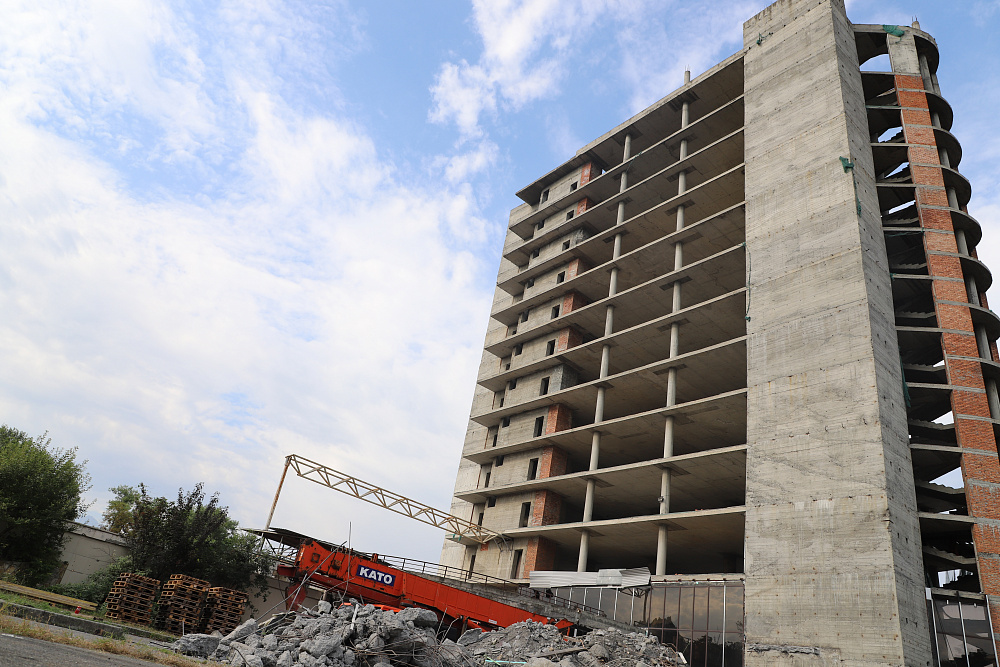 Стартовал демонтаж недостроенного здания на набережной р.Терек