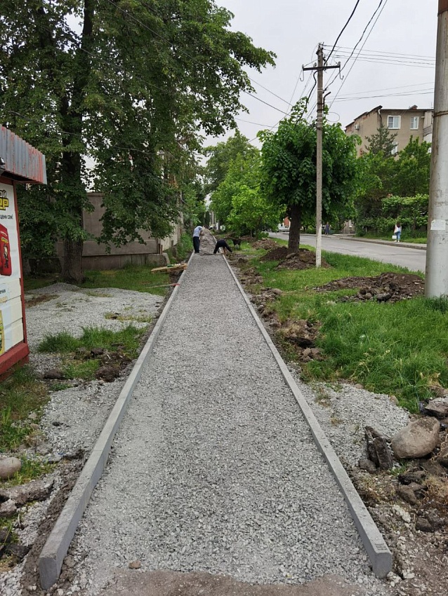 В работе еще два объекта. После обращения граждан в администрацию местного самоуправления с просьбой о строительстве тротуара по улице Первомайской городские власти решили вопрос положительно, и работы уже близятся к завершению. На объекте уложен поребрик и подготовлено основание для асфальта. Также по просьбе горожан идет обустройство тротуара по улице Хадарцева.