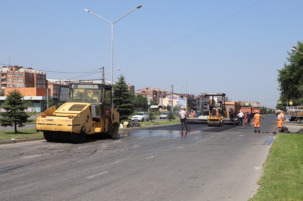 Ремонт дорожного полотна по улице Весенней от Калинина до Цоколаева завершается. Дорожники укладывают завершающий слой асфальта. Работы проводятся в соответствии с национальным проектом «Безопасные качественные дороги». На объекте работает 15 человек и задействовано 8 единиц техники.Как заверил ведущий специалист муниципального предприятия «Дорожный фонд» Хасанбек Цахилов, подрядная организация гарантирует пятилетний срок эксплуатации дорожного полотна.