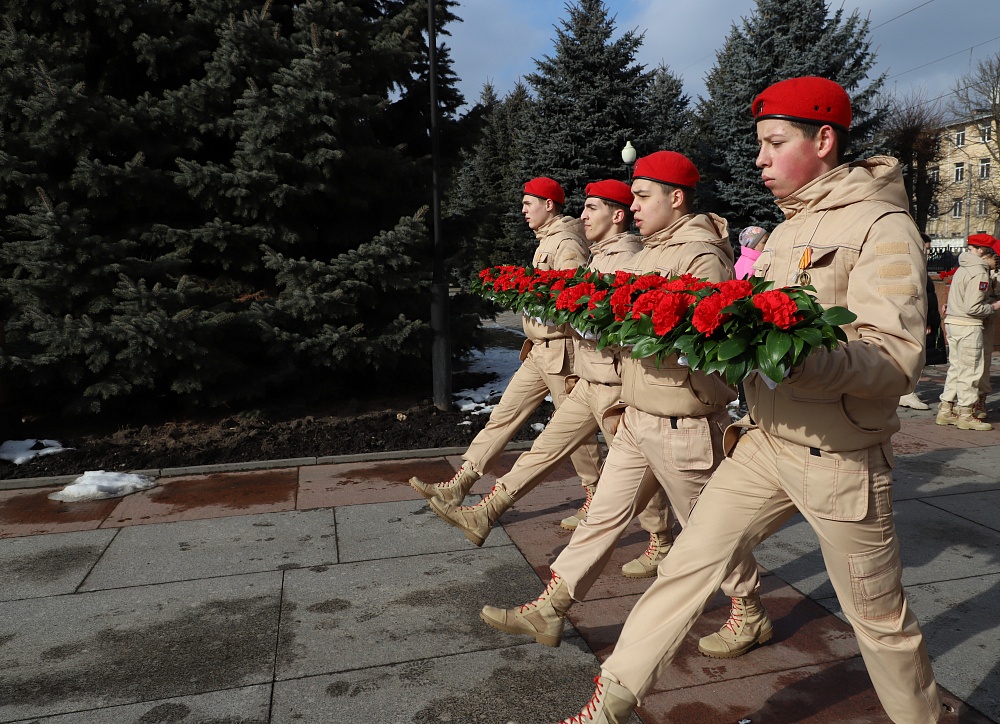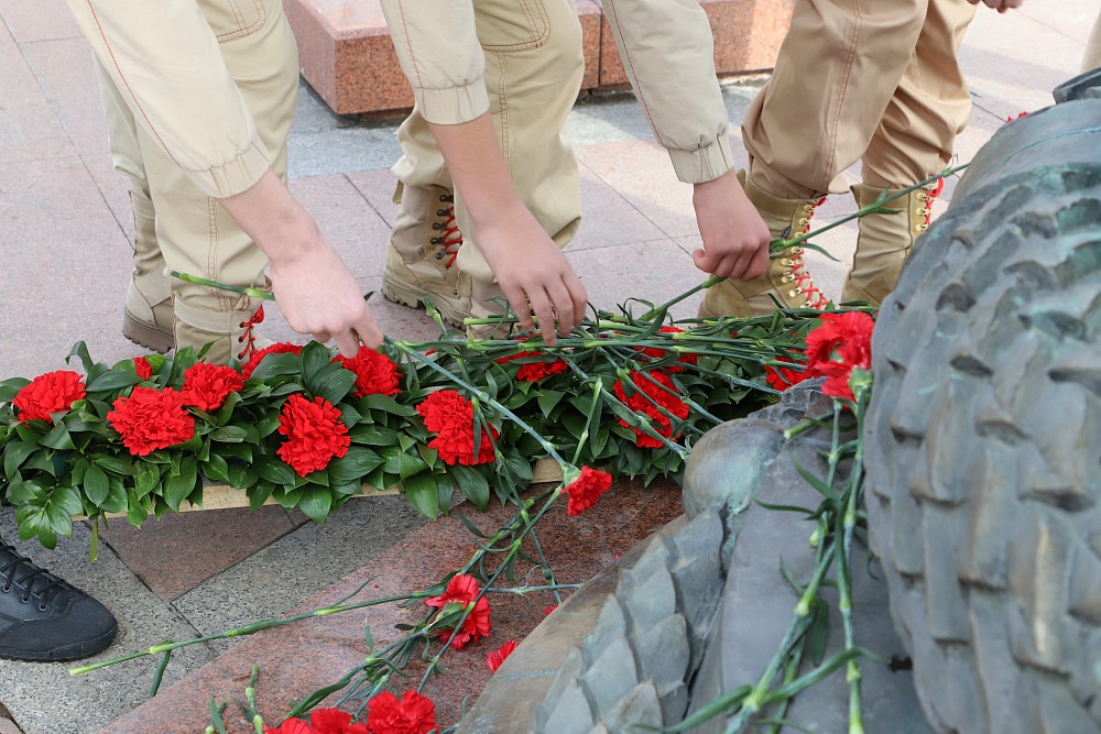 Собравшиеся возложили живые цветы к подножию стелы и почтили минутой молчания память всех, кто отдал свою жизнь в боях за Родину.