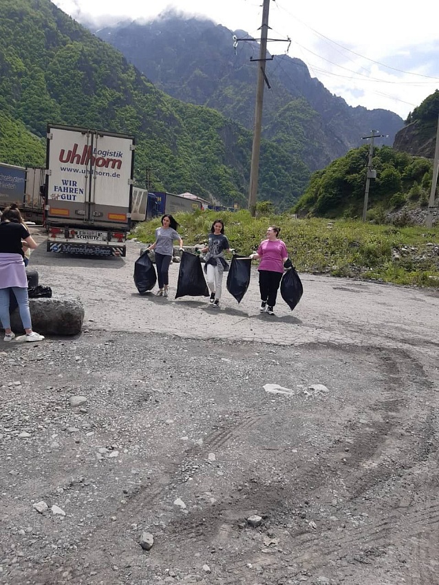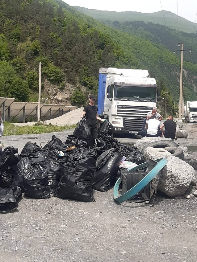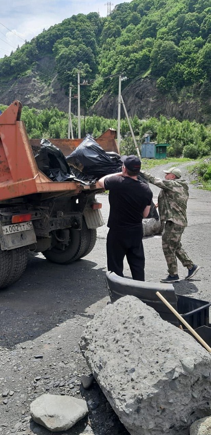 С обочин федеральной трассы в районе пункта пропуска "Верхний Ларс" собрали и вывезли самосвал мусора.