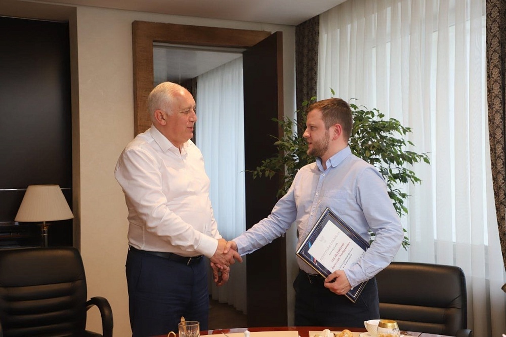 Вячеслав Мильдзихов встретился с куратором регионов Южного и Северо-Кавказского федеральных округов департамента регионального развития Российского футбольного союза Станиславом Жилкиным.