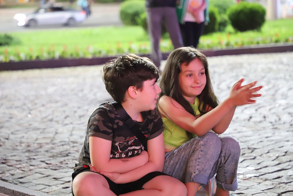 В столице республики акция началась в 20:00 на Площади Штыба, когда десятки прожекторов осветили небо над городом. Молодые артисты, среди которых Дамиан Карноухов, Илона Кесаева, Лада Шаталова, Владимир Качмазов и другие, исполнили лирические песни о войне.