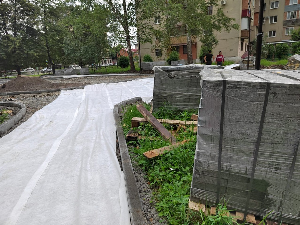 Продолжаем благоустройство территории на пересечении проспекта Коста и ул. Леваневского.
